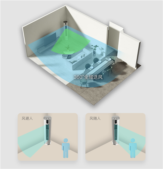 長期以來,自從客廳餐廳打通成為流行的裝修風格后,客廳、餐廳的空調設置就一直困擾消費者們:用兩臺空調不劃算,用一臺空調但是功率難以兼顧。此外,今年又出現特殊的“雙拉尼娜現象”,導致冬季異常寒冷。一些原本只在客廳安裝空調的用戶,因為空調功率不夠,不得不在餐廳多安裝幾個“小太陽”、暖風機,反而產生許多不便。以往,像客廳和餐廳一體化這樣的主流戶型,通常都是客廳安裝的一個柜機空調解決客廳和餐廳的需求。但是傳統的柜機因為有限的送風距離和固定的送風模式,導致客廳“服務”過量,餐廳“服務”不足。