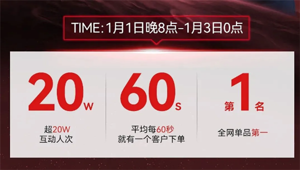 截止1月1日20點—1月3日0點,億田S8A蒸烤獨立集成灶憑借強大的高端爆品勢能持續發力,首發直播單場互動人次超20萬+!平均每60秒就有一個客戶下單,以爆發式的業績增長一舉奪得京東、天貓雙平臺廚衛大電/集成灶主品類C位。再次鎖定元旦期間全網第1單品!