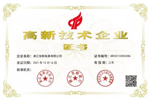 以榮獲《高新技術企業》證書為起點,佳歌集成灶正式邁入高新技術企業發展新階段,佳歌自主研發創新的步伐將加速向前!