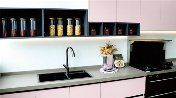 門板采用304食品級不銹鋼,防霉、防蛀、防甲醛、防變形,使用壽命長。部分吊柜采用開放式設計,伸手即達,收納輕松,便于拿取。