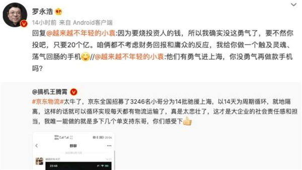 至于直播賣貨,“交個朋友”CEO黃賀也是對外表示,羅永浩并不是完全離開,而是慢慢淡出。