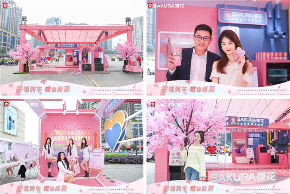 SAKURA櫻花全國快閃活動以新奇、潮流的表現形式,極大的激發了年輕人的參與熱情。據了解,櫻花打造的快閃活動以“幸福列車,櫻你而美”為主題;顒蝇F場被打造成了列車的造型,登上這輛幸福列車,即能徜徉在櫻花編織的粉色浪漫中,讓幸福變得觸手可及。