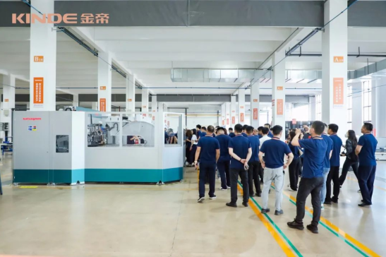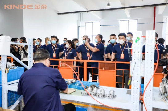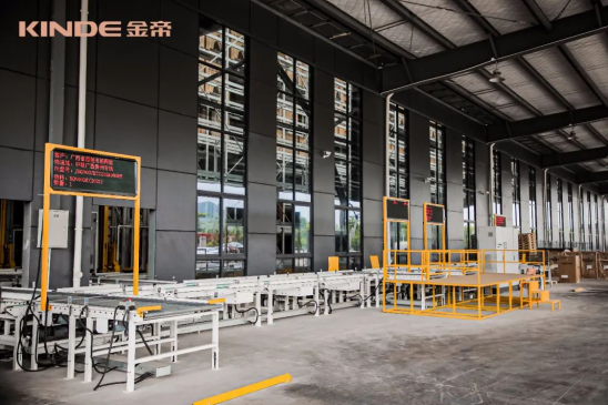 此外,我們還了解到,在物料及配件周轉方面,金帝采用先進的AGV自動周轉車,減少人工搬運作業及周轉;裝配線采用全自動作業方式,與智能立體倉庫管理銜接,以此降低人力成本,提高勞動生產效率和資源綜合利用率;智能制造指揮中心,實現對生產計劃、人員、物料、制造過程等全流程的實時監管,完成統一指揮與調度。