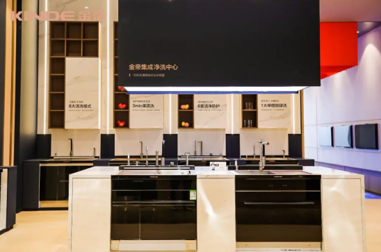 此外,在廚電從單品向整體廚房進階的趨勢下,金帝順應消費升級下的場景需求,提出“1個廚房,2臺金帝,就是干凈”的健康廚房戰略,并推出由金帝集成灶為代表的集成烹洗中心和以金帝水槽洗碗機為代表的廚房凈洗中心組成的全場景解決方案。