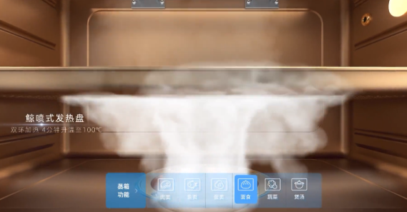 作為蒸烤領域的領軍者,帥豐S65系列在蒸烤功能上又做出了革命性升級,首先是容量上進行了70L的擴容,蒸烤合一設計,容量更大、效率更高;其次創新鯨噴式發熱盤,雙環加熱,4分鐘升溫至100℃,能夠牢牢地鎖住熱量,鎖住食物的鮮美滋味,實現了升溫快、蒸汽量大、溫度均勻三大高效功能;更有純蒸、高溫蒸、慢燒烤、熱風烤、烘焙烤、解凍等多種烹飪模式,尤其是加濕烤模式下,讓食物保持原有水分,成就外焦里嫩的驚艷口感。