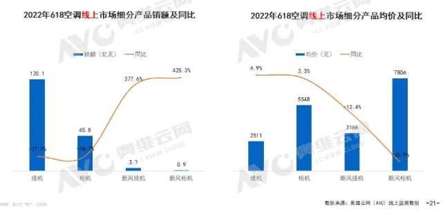 奧維云網監測數據顯示,618期間空調線上市場銷售額為165.9億元,同比下降16.9%,銷售額為560.9萬臺,同比下降21.0%。