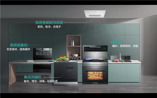 緊隨其后,以“套系化”為內核的智能廚房整體解決方案開始抬頭,伴隨著5G+AIoT創新技術的落地應用,廚房硬件產品的增多,以及新消費群體的崛起,基于“智能化、套系化”而構建的整體廚房解決方案正在加速走進中國廚房。