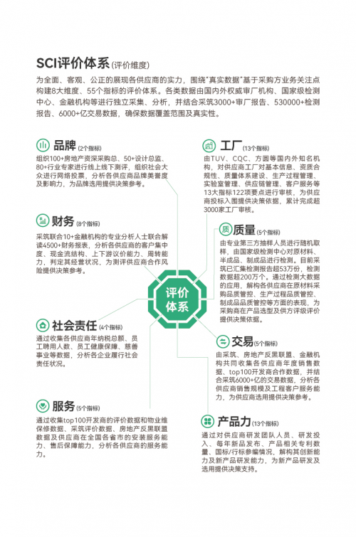 SCI評價資料真實。測評資料來自房地產商、設計院、建筑單位、檢測機構、金融機構、供應商、第三方數據平臺等渠道,覆蓋整個產業鏈。