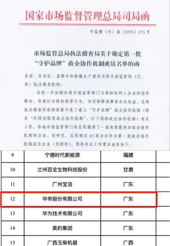 而該機制通過整合行政資源和企業力量,構建了從線索到聯合調查、最后成果共享的閉環。入選該機制后,華帝將獲得更高效的維權保障:發現重大侵權案件線索時,可提請省級市場監管部門組織查辦,必要時由市場監管總局統籌協調跨區域執法,維權響應速度與執法力度將得到顯著提升。這既是對企業品牌價值的高度認可,更是政企協同護權、踐行“政務親商”服務理念的具體體現,為企業高質量發展提供優良環境。