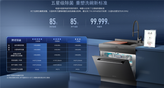 森歌始終堅持以技術驅動產品迭代,以用戶需求導向推動體驗升級。在集成洗碗機品類,森歌不僅行業首創全自動獨立碎渣強排技術,同時實現了遠超五星的除菌標準,除菌率高達99.999%;在容量方面,突破了擁有16套大容量一次洗,并實現更節能的【上下左右智能分區洗】,清潔指數達1.15,遠超一級國標值(1.12)!在技術上的不斷突破,也是對當代消費者日益注重健康有品質的生活的深入洞察。