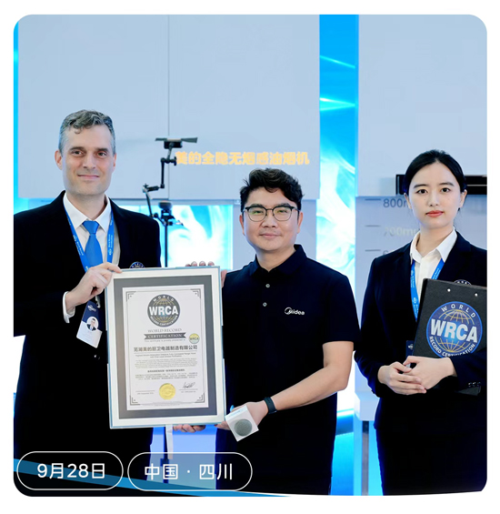 9月28日,美的再次向吉尼斯世界記錄發起了挑戰。在世界紀錄認證WRCA的監督與央視網的直播見證下,美的全隱無煙感油煙機T9在四川成都成功挑戰“最高吸煙距離實現一級凈煙的全隱油煙機世界紀錄。