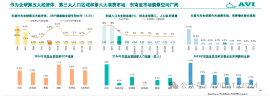 文建平援引AVI DATA和權威公開研究數據指出,東盟作為全球第五大經濟體,2024年GDP增速達到4.3%,持續領先全球平均水平。該區域人口總數位列全球第三,占世界總人口的9%,人口紅利依然顯著。