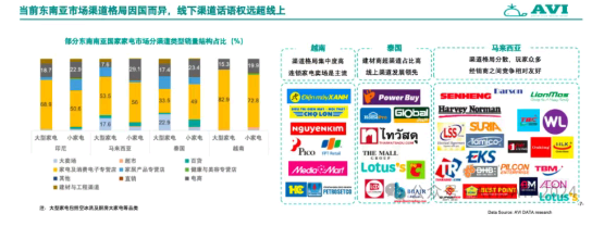 AVI DATA研究顯示,東南亞市場的渠道結構呈現顯著的國別差異。在馬來西亞渠道格局相對分散,經銷商之間競爭較為友好,建材商超渠道占據重要地位。越南、泰國市場則表現出較高的集中度,連鎖家電賣場已成為主流渠道。