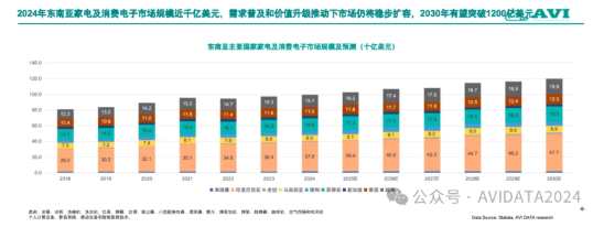 根據相關數據顯示,2024年東南亞家電及消費電子市場規模已接近1000億美元。在需求普及與價值升級的雙輪驅動下,預計到2030年,該市場規模將突破1200億美元。
