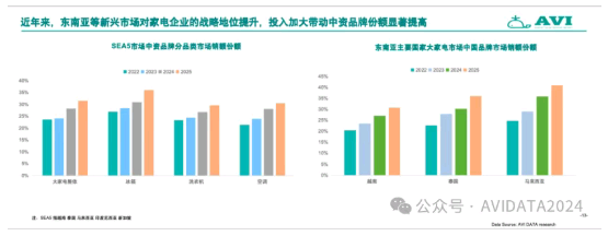 近年來,隨著中國企業戰略資源傾斜與投入加大,中資品牌在東南亞市場份額顯著提升。AVI DATA數據顯示,在越南、泰國、馬來西亞、印度尼西亞、新加坡這五個重點市場(SEA5),中國品牌多個品類銷售額份額持續增長。大家電市場中國品牌份額已形成不可忽視的力量。