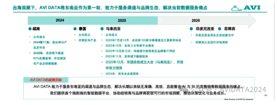 AVI DATA以“高準確度、高效率、AI+大數據智能驅動、端到端整合”為核心標準,致力于成為面向全球消費電子、家電和快消品行業的一站式、智能化大數據服務商。公司成立以來進展迅速:2024年11月產品成功發布;2025年計劃實現線下渠道80%的覆蓋率,并于10月發布三大電商平臺報告,11月發布線下數據報告,12月在馬來西亞舉行東盟總部成立大會并發布官方報告;2026年將進一步發布全品類報告。目前,印度尼西亞團隊正在組建,菲律賓市場調研也已啟動。
