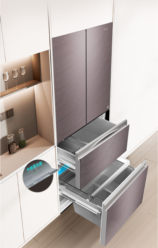 卡薩帝星悅550升法式冰箱采用零距離自由嵌入式設計,通過門體平齊技術與隱藏式鉸鏈,實現冰箱與櫥柜0cm無縫銜接,柜門可與櫥柜門同步開合,清潔時無需單獨擦拭縫隙。969L超大容量(冷藏620L、冷凍349L)搭配分區存儲設計,包含2個母嬰專屬空間、3個獨立保鮮抽屜、1個干貨區,可滿足五口以上大宅家庭兩周儲鮮需求,無需頻繁采購。核心的MRA低氧窖藏養鮮技術,通過降低箱內氧氣濃度至5%-8%,延緩食材氧化速度,牛肉存放15天仍保持鮮嫩口感,草莓存儲7天無腐爛。智慧動態殺菌系統采用等離子凈化技術,凈化率99.999%,可去除食材表面激素殘留。高端法式門體設計線條流暢,搭配星空灰面板,適配現代輕奢、新中式等大宅裝修風格,且支持單手開合,使用更便捷,適合追求品質生活、注重家居美學的高凈值家庭。