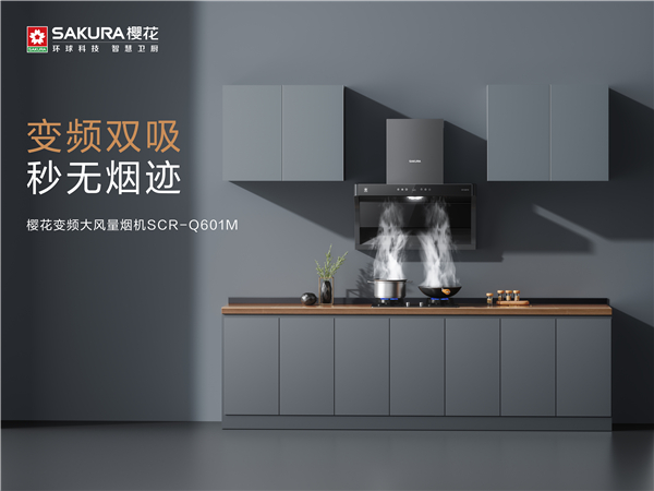 烹飪時的熱氣和油煙,往往是對廚房的一大考驗。櫻花吸油煙機Q601M以薄型潛吸形態,巧妙融入廚房格局,帶來開闊的視野和輕盈的空間感,讓烹飪空間不再局促。25m³/min澎湃吸力和大直徑風輪支撐,可在油煙升騰時迅速攏排,33秒即可讓空氣立享清新。