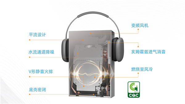 德意小精靈熱水器在設計之初就將“安靜”作為重點之一,通過七大降噪技術,從水路、風路到燃燒系統全面優化:V型靜音燃燒火排,讓火力集中不嘈雜;變頻風機能根據需求自動調速,風聲更輕;燃燒室用雙重隔斷阻隔噪音;底殼密閉連接進一步減小噪音傳出;背部進氣孔利用亥姆霍茲原理降低呼呼聲;水流通道也做了順滑設計,減少水流撞擊帶來的噪音;平流設計讓氣流順滑低阻減少撞擊噪音。全通路配合實現低分貝運行,達到一級靜音標準,用水時安靜如置身圖書館,營造舒適、寧靜的用水體驗。